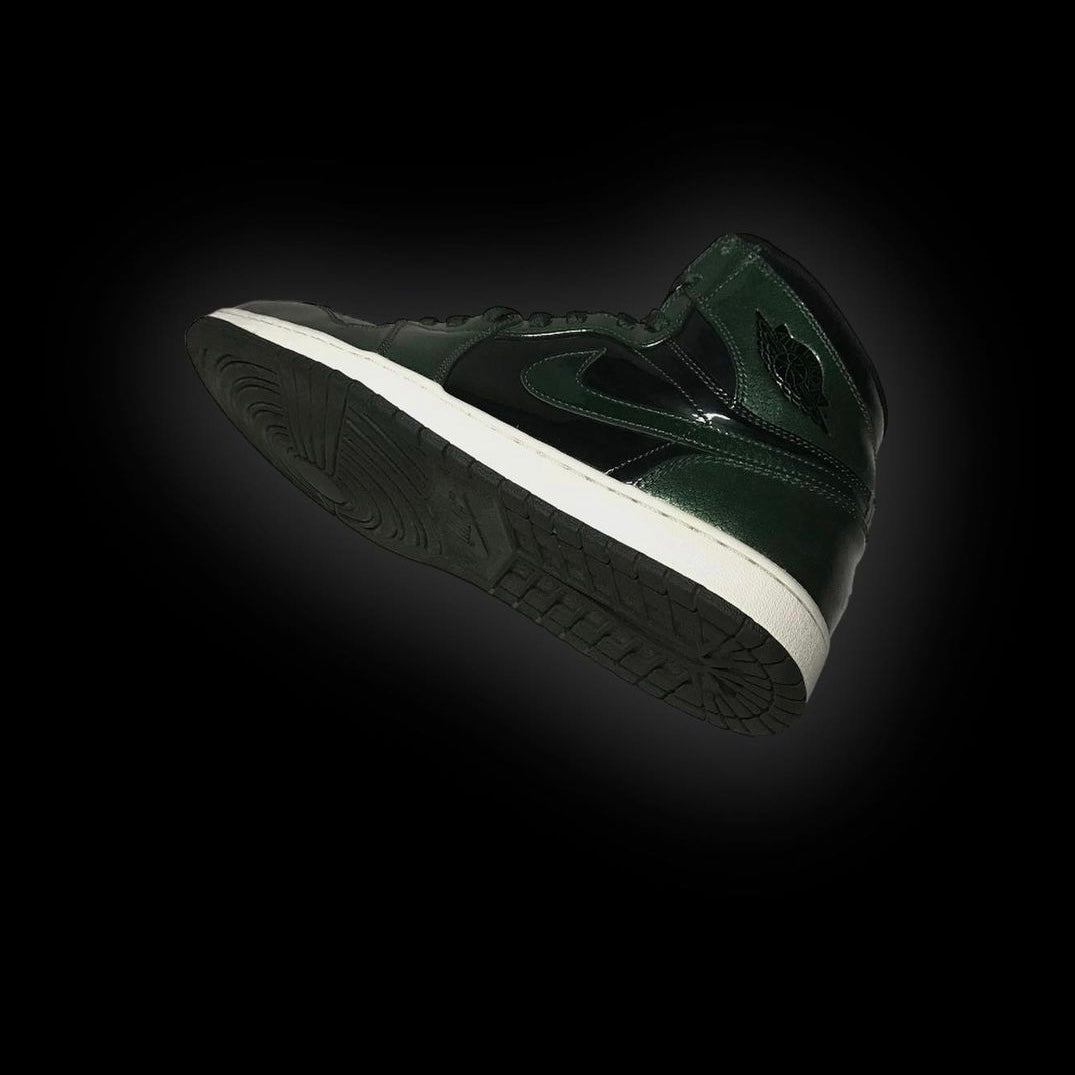 La marque Air Jordan n’en finit plus de ses spot publicitaires où sont mis en avant des stars de la NBA comme Russel Westbrook ou encore Kawhi Léonard deux athlètes qui défient les lois de la gravité. La chaussure colle parfaitement avec ce mindset car au delà de sa construction en cuire vernis, craquelé, vintage et sa teinte black/Grove Green, on peut apercevoir derrière la languette l’inscription «Anti-Gravity Machines». Encore une fois le patent leather donne à la paire un aspect luisant et élégant.